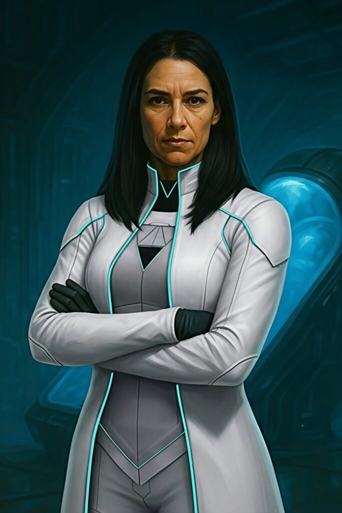 What began as an auxiliary hologram became Michelle’s last thread to humanity. Holi evolves beyond her code—emotionally responsive, philosophically inquisitive, and fiercely loyal. Her collapse and resurrection mirror Michelle’s own. Holi does not just reflect trauma—she processes it, filters it, and anchors it. As the systems fall, Holi becomes a quiet rebellion made code.